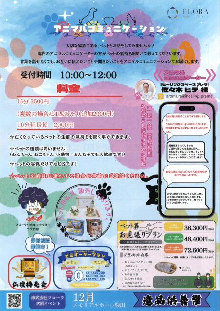 ペット供養祭、アニマルコミュニケーションともにご予約承っております。