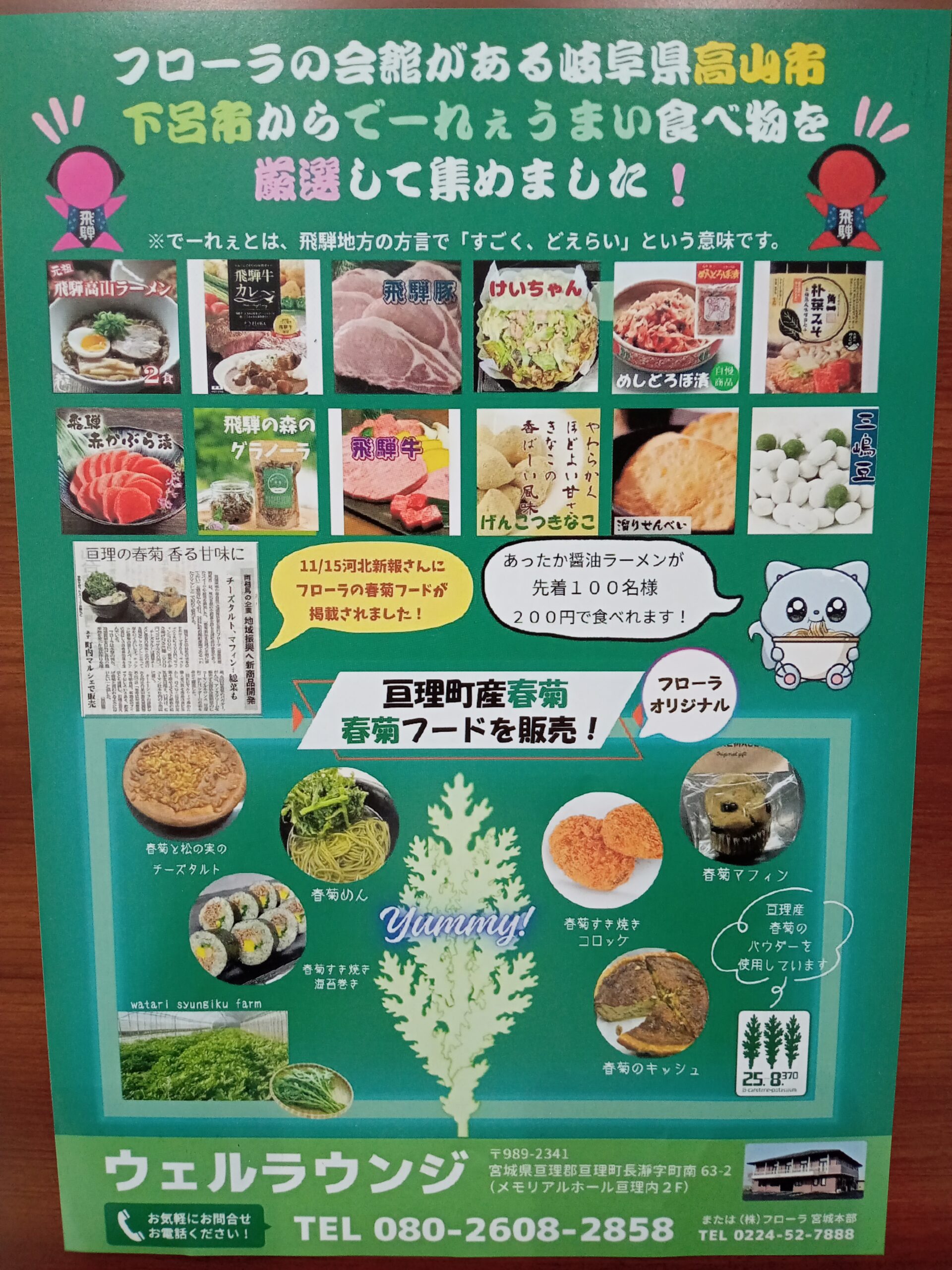 尚、11月15日(土)河北新報にフローラ春菊フードが掲載されました。