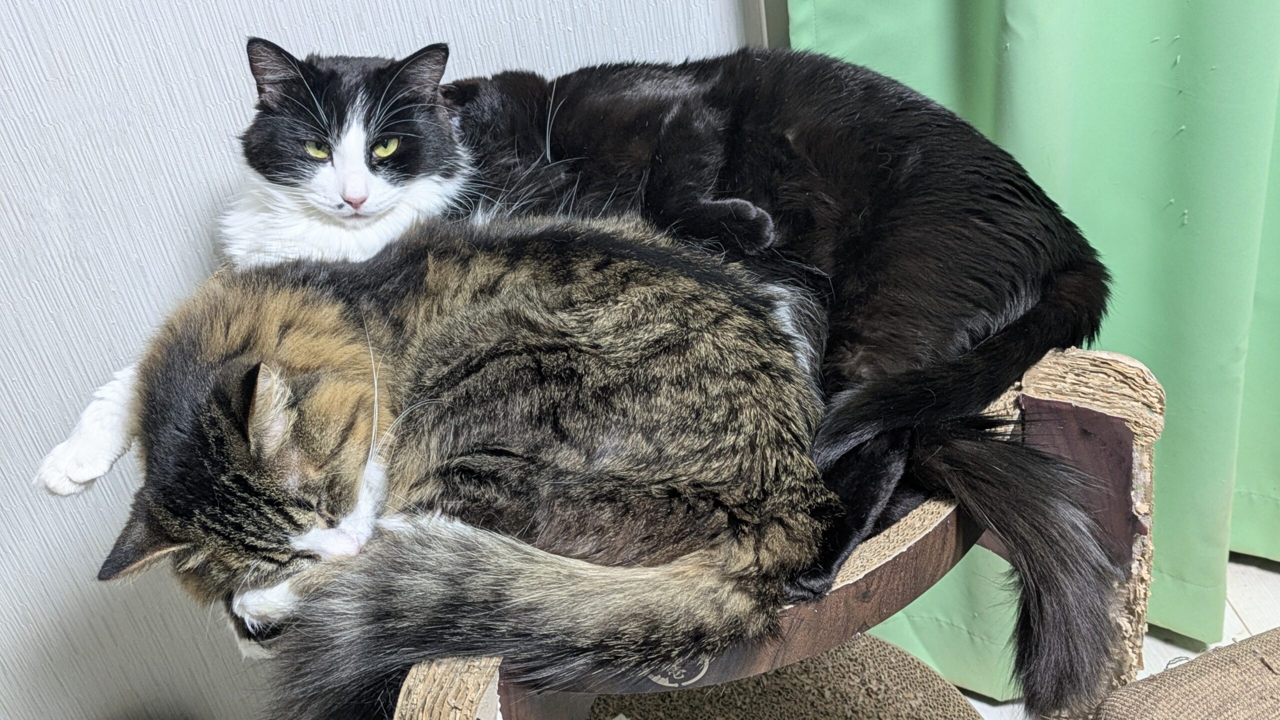 ここに3匹居るんです。白黒の子に重なるように真っ黒の子が…
