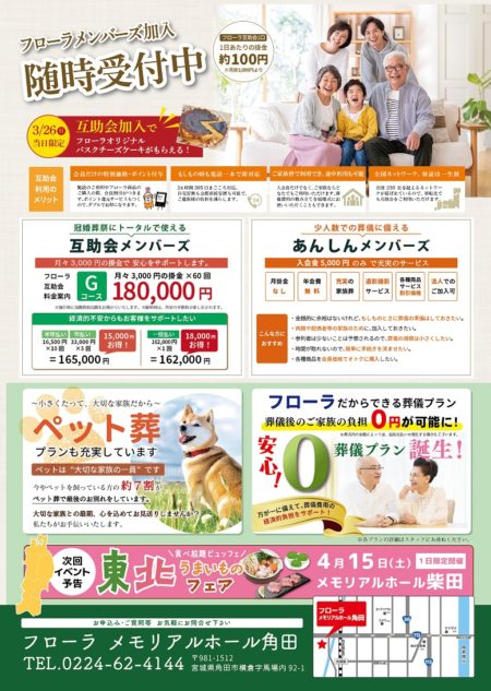 4月にはメモリアルホール柴田で1日限定ではございますが、東北うまいものフェアを開催予定です。
