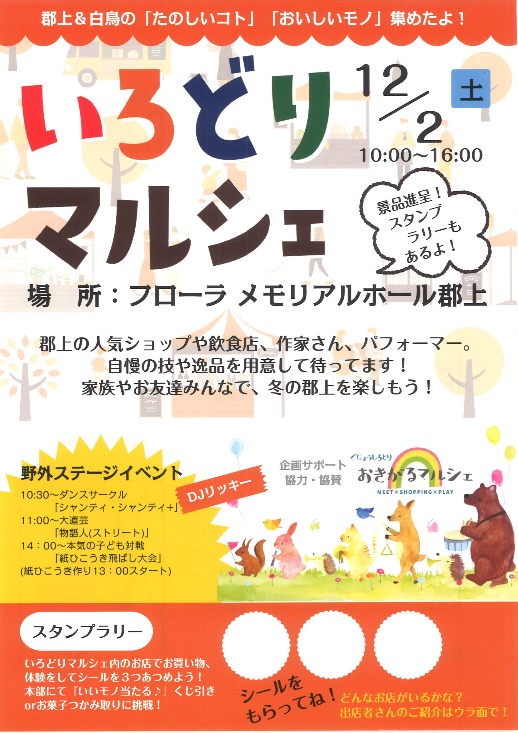 12月2日メモリアルホール郡上においていろどりマルシェを開催します。