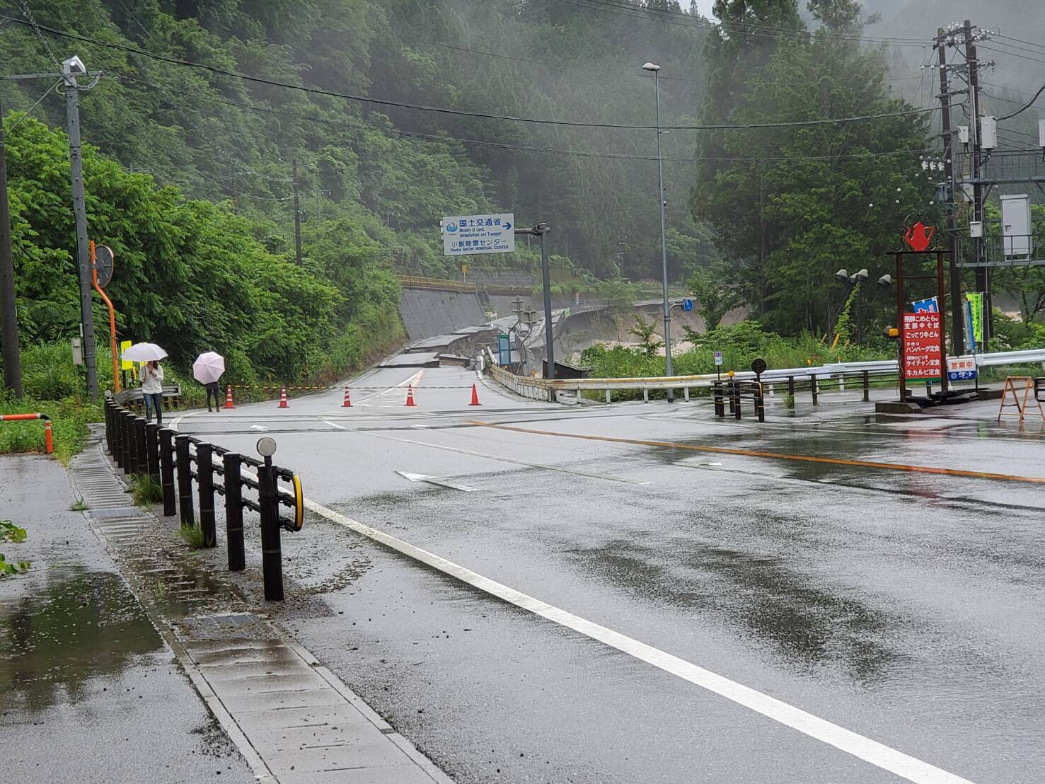 下呂市小坂町を通る国道41号線は500mにも渡り道が崩れているため復旧に時間がかかるとのことで電車も国道の側を通ってるため通行止めのままになります。