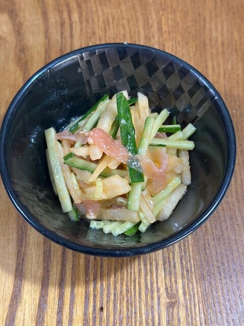 塩味のきいた生ハムのトロっとした触感ときゅうりのシャキシャキ感、梨の甘みとコチュジャンがいい仕事をしてくれています!おつまみにも最高ですよ♪