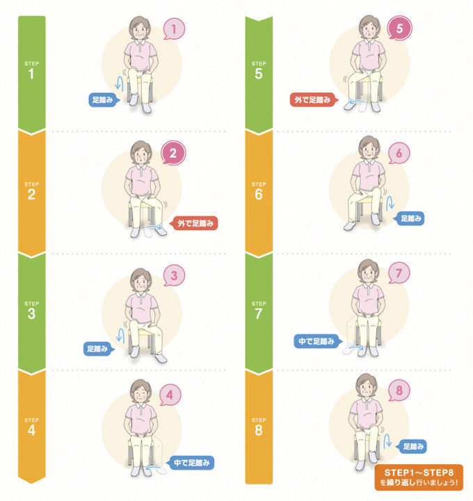 STEP 8 左足を上げて下ろし、「8」と声を出します。