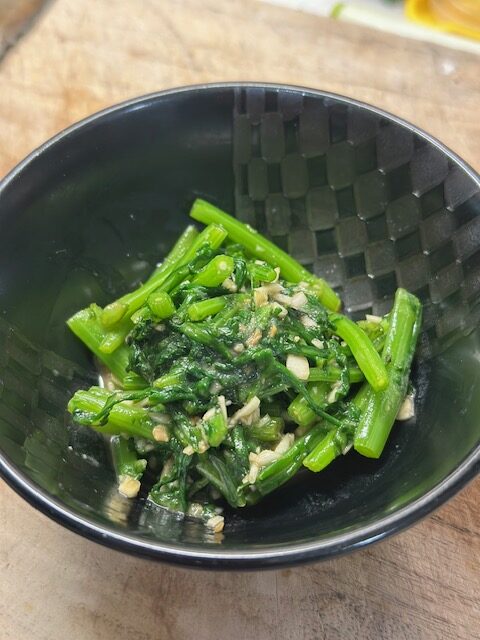 と、ご指導をいただきました。いわゆる、緑黄色野菜ですね!ビタミンAが大事とのこと。緑黄色野菜も色々ありますが、今回は春菊で