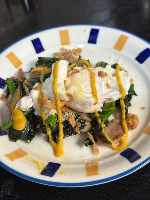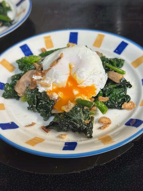 今回は栄養がたっぷりのちぢみほうれん草のポーチドエッグをご紹介いたします。
