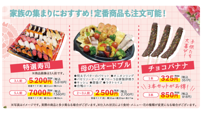 母の日コレクションのほか、家族の集まりにおすすめの定番商品、